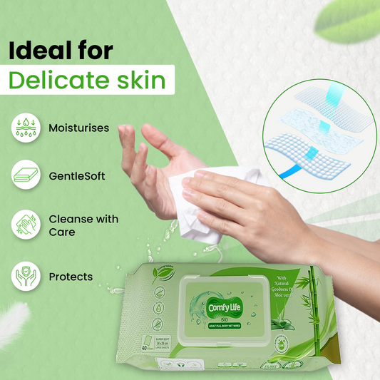Comfy Life Biodegradable Adult Full Body Wet Wipes Large Luxury Eco-Friendly Fresh-Feel Rinse-Free Fragrance-Free Bed Bath Intimate-Care Soft Sheets x40
