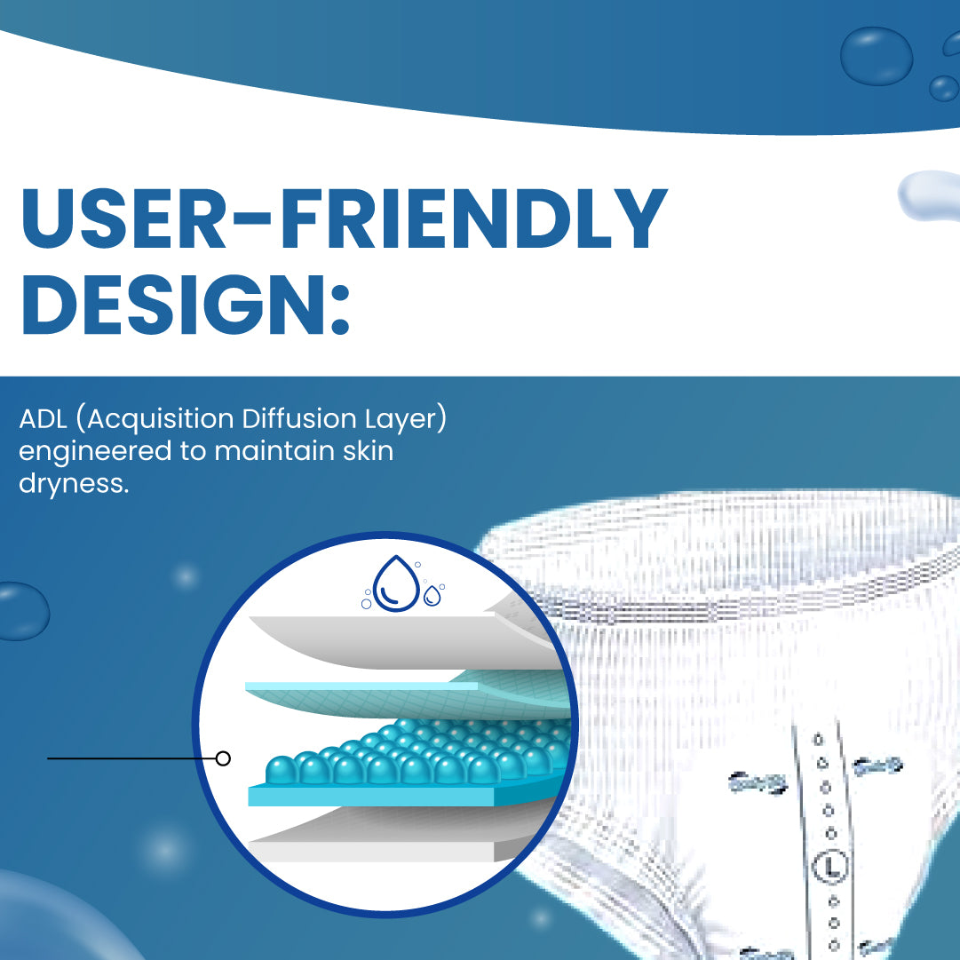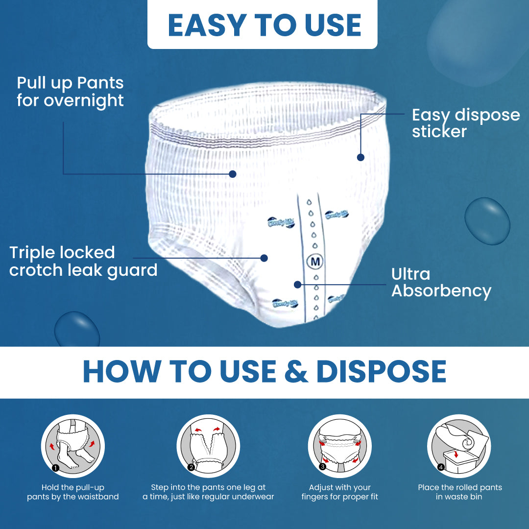 - Ultra Absorbency and Dryness: With an Acquisition Diffusion Layer and Keep-Dry technology, Comfy Life Pull Up Pants wick moisture away from the skin, keeping you dry and irritation-free. The built-in wetness indicator lets you know when it's time for a change, providing extra peace of mind.